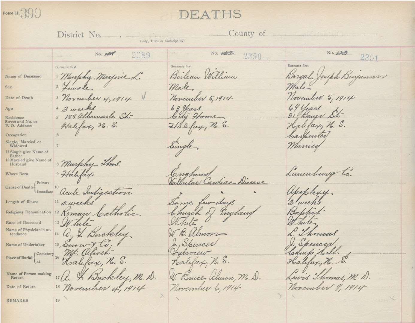 Death Registration: Year: 1914 book: 20 page: 399 number: 2389