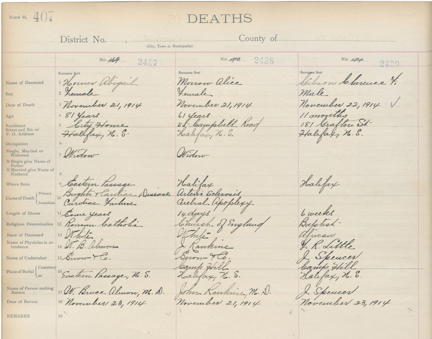 Death Registration: Year: 1914 book: 20 page: 407 number: 2437