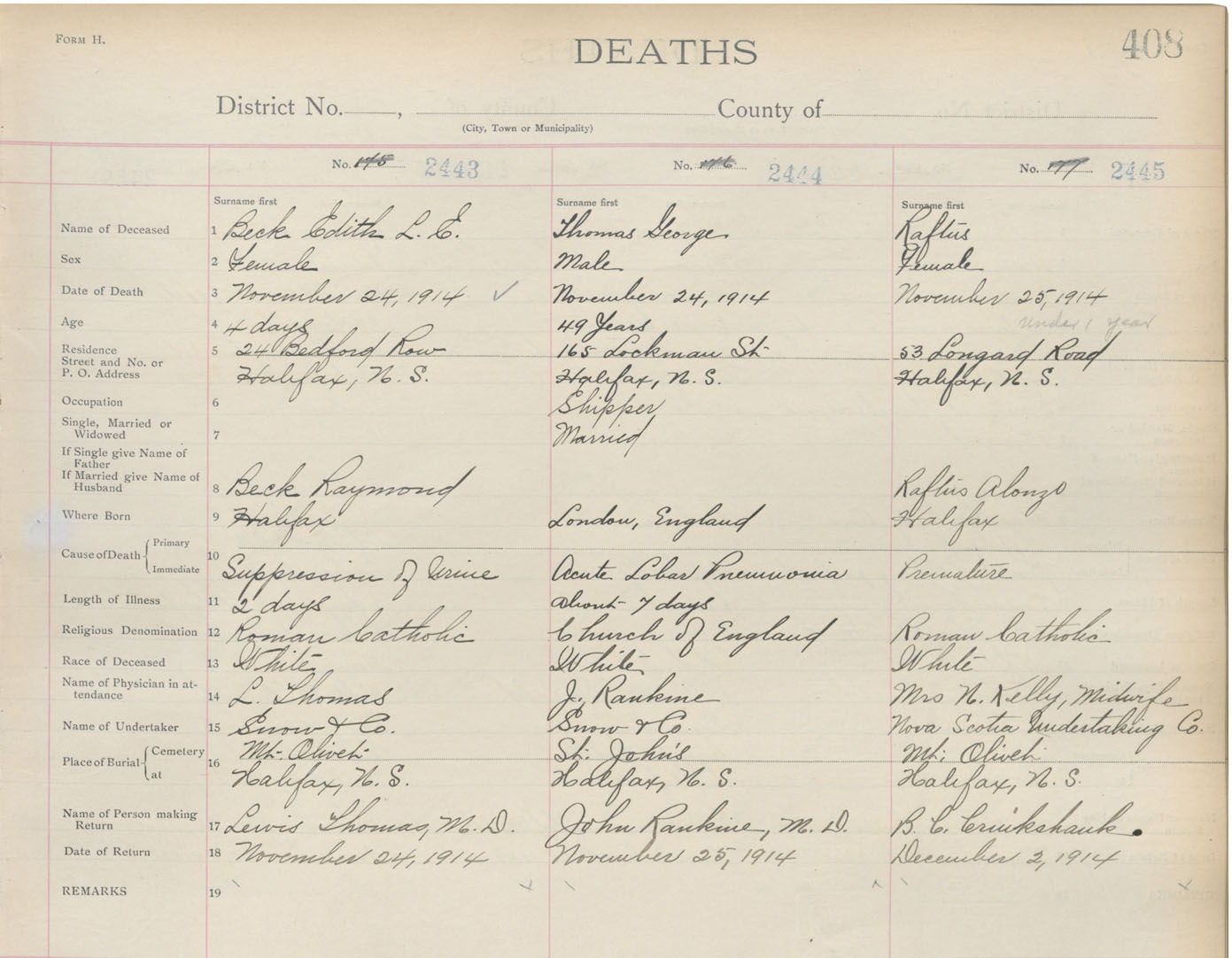 Death Registration: Year: 1914 book: 20 page: 408 number: 2443