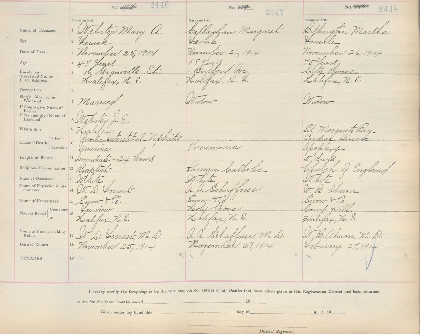 Death Registration: Year: 1914 book: 20 page: 408 number: 2446