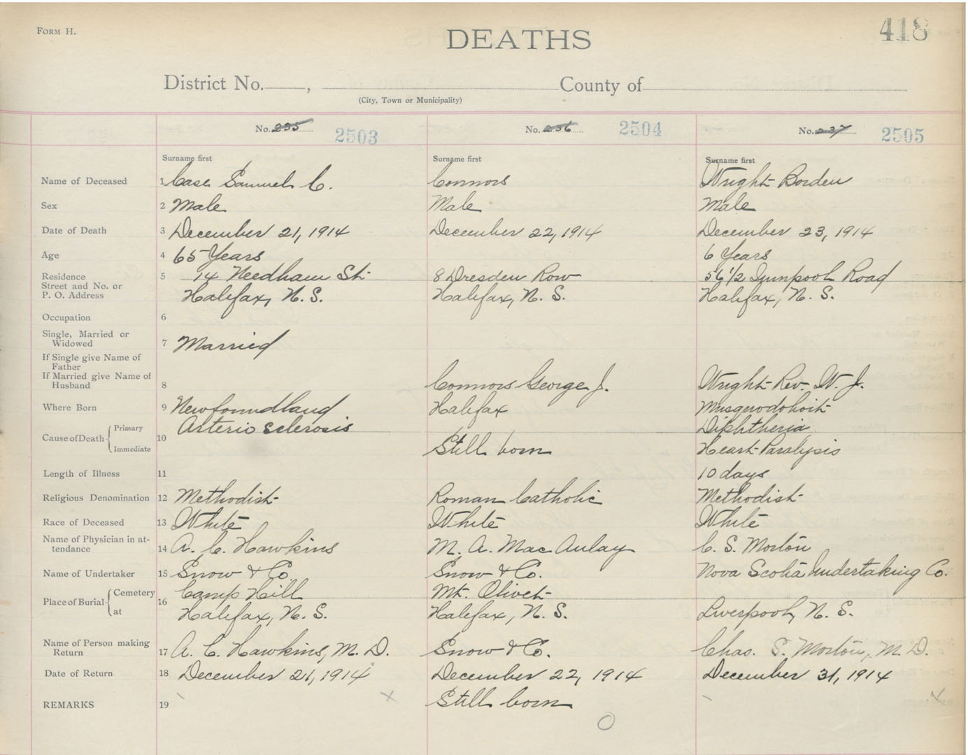 Death Registration: Year: 1914 book: 20 page: 418 number: 2503