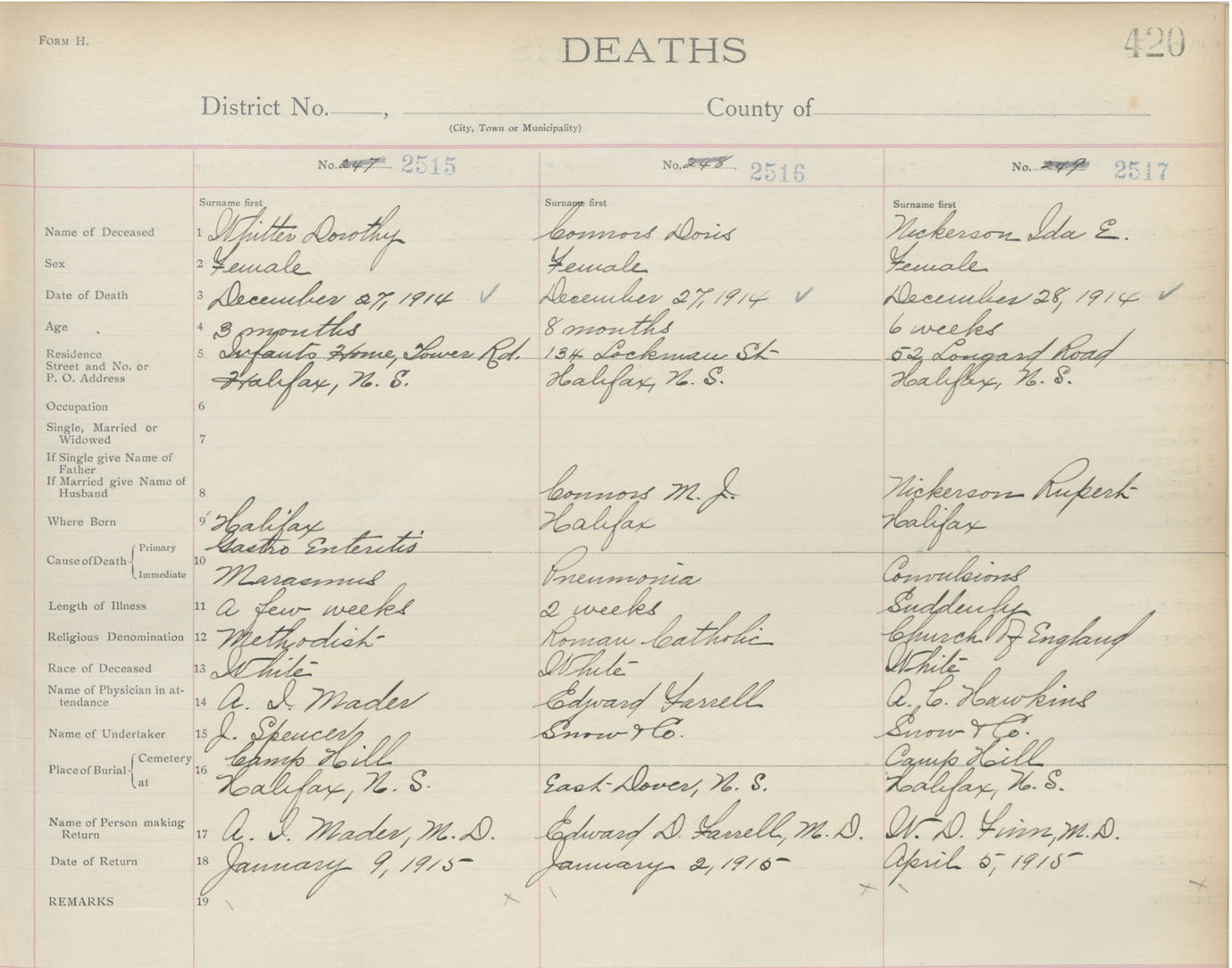 Death Registration: Year: 1914 book: 20 page: 420 number: 2515