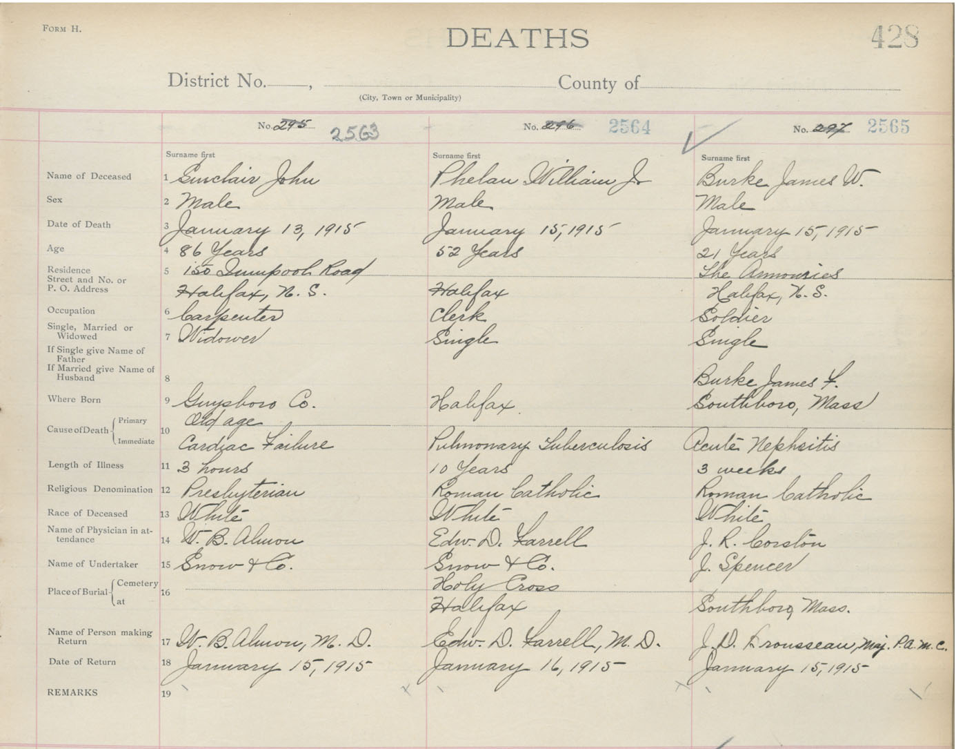 Death Registration: Year: 1915 book: 20 page: 428 number: 2565
