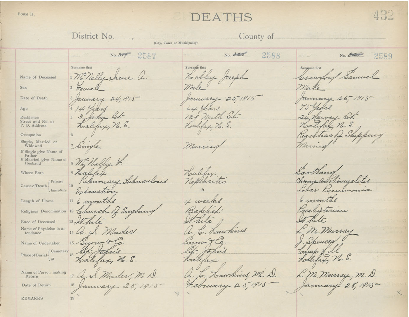 Death Registration: Year: 1915 book: 20 page: 432 number: 2589