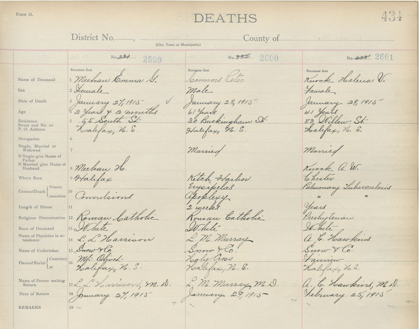 Death Registration: Year: 1915 book: 20 page: 434 number: 2601