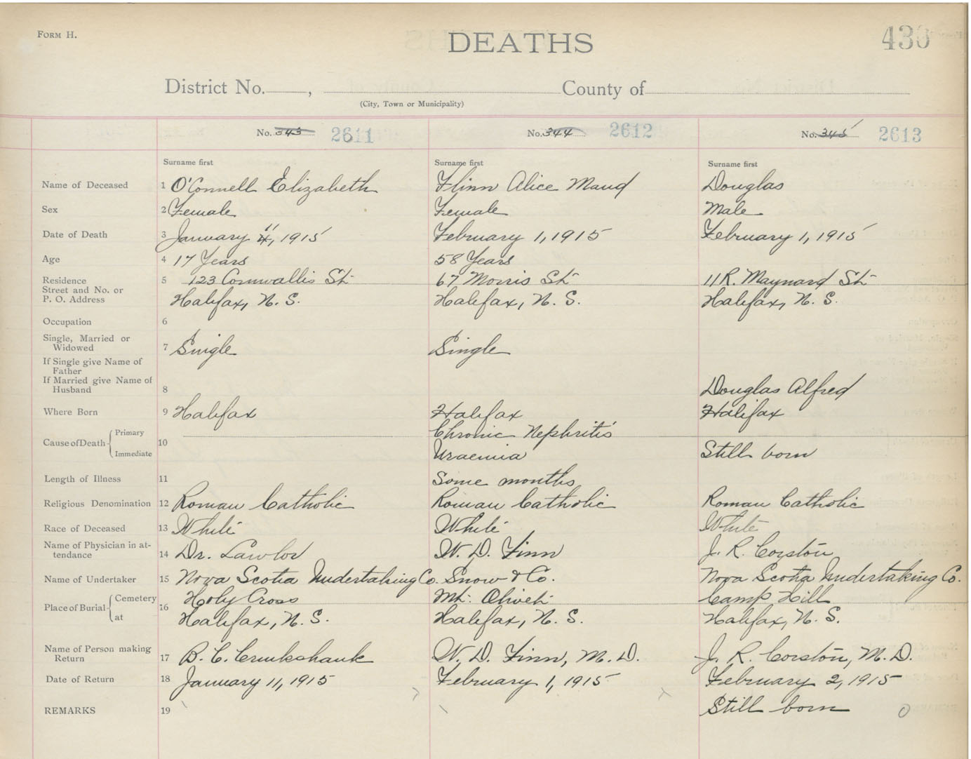 Death Registration: Year: 1915 book: 20 page: 436 number: 2613