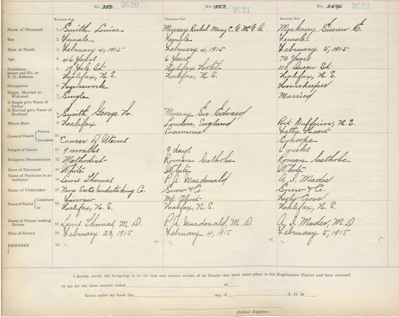 Death Registration: Year: 1915 book: 20 page: 437 number: 2620