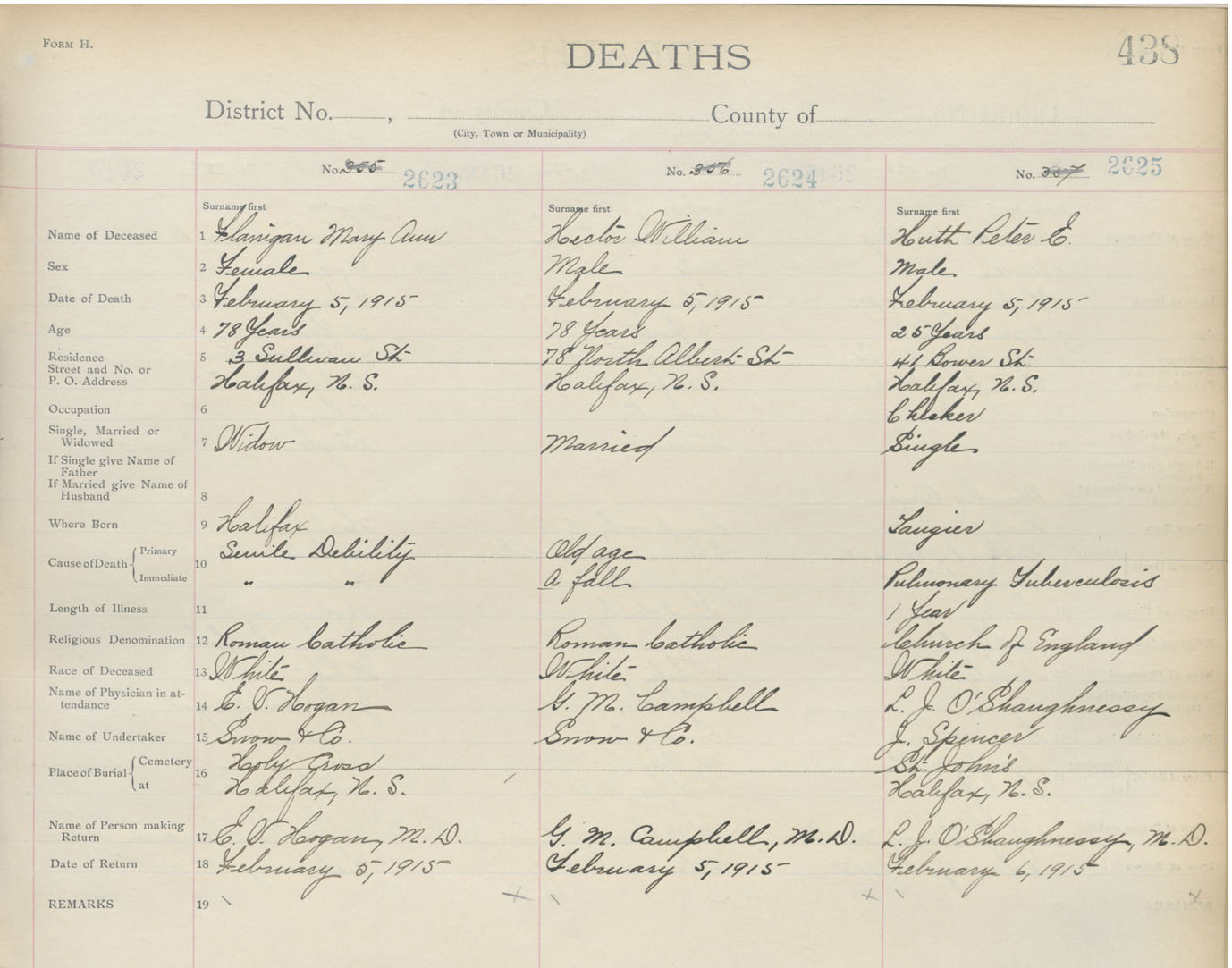 Death Registration: Year: 1915 book: 20 page: 438 number: 2623