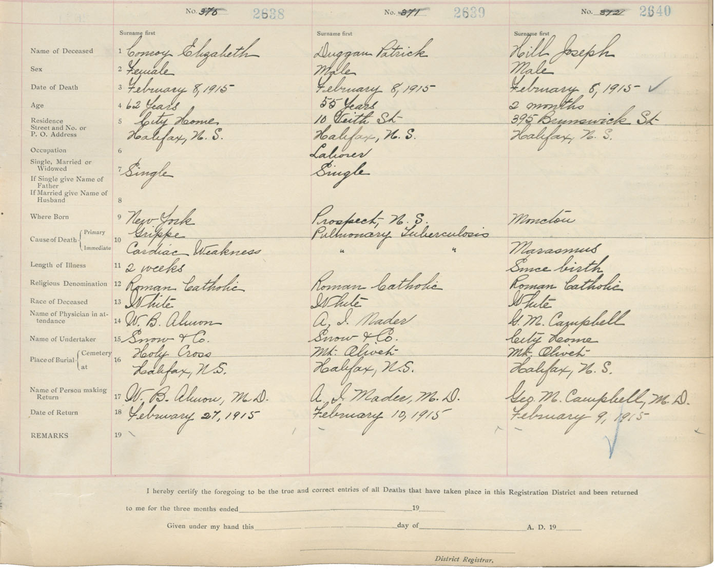 Death Registration: Year: 1915 book: 20 page: 440 number: 2638
