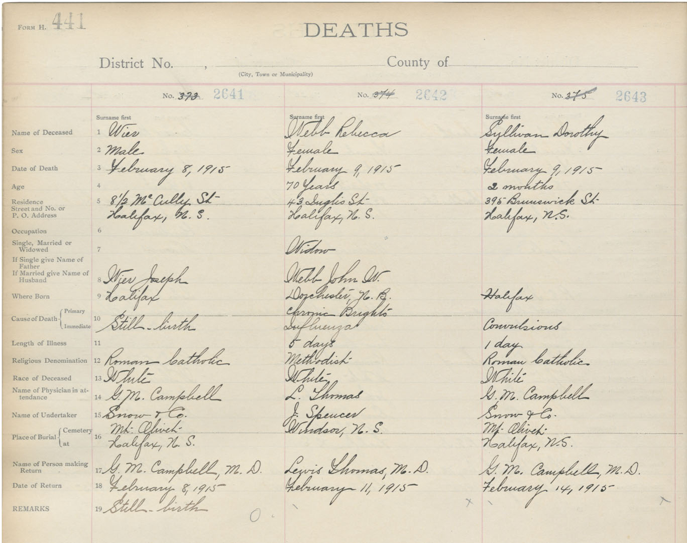 Death Registration: Year: 1915 book: 20 page: 441 number: 2641
