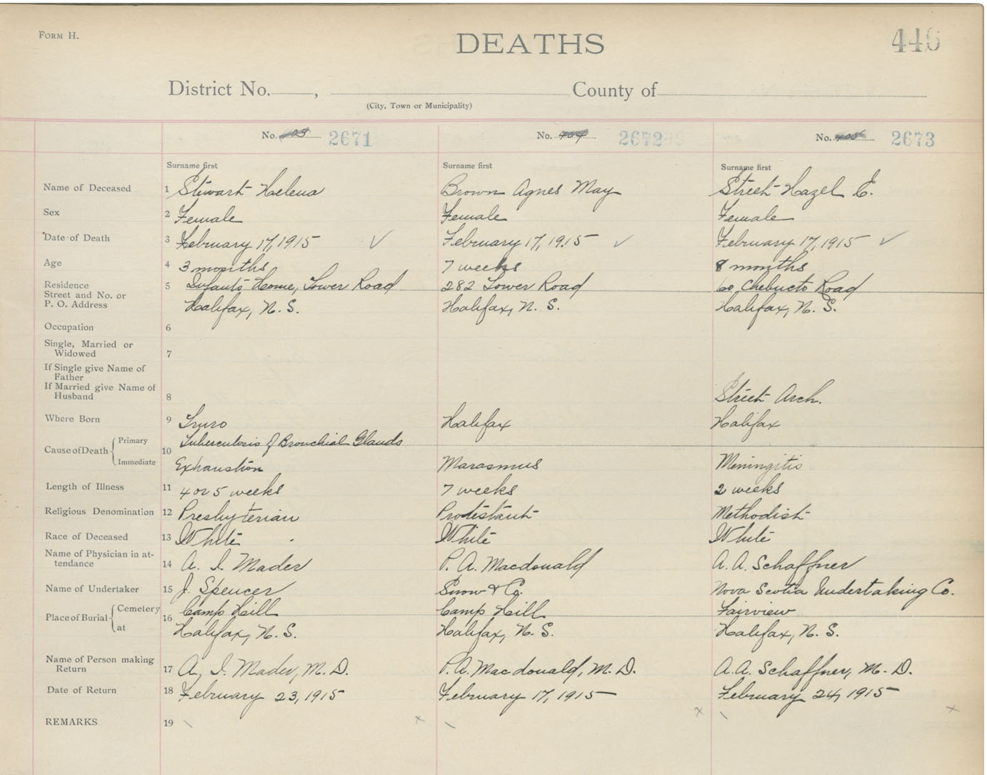 Death Registration: Year: 1915 book: 20 page: 446 number: 2673