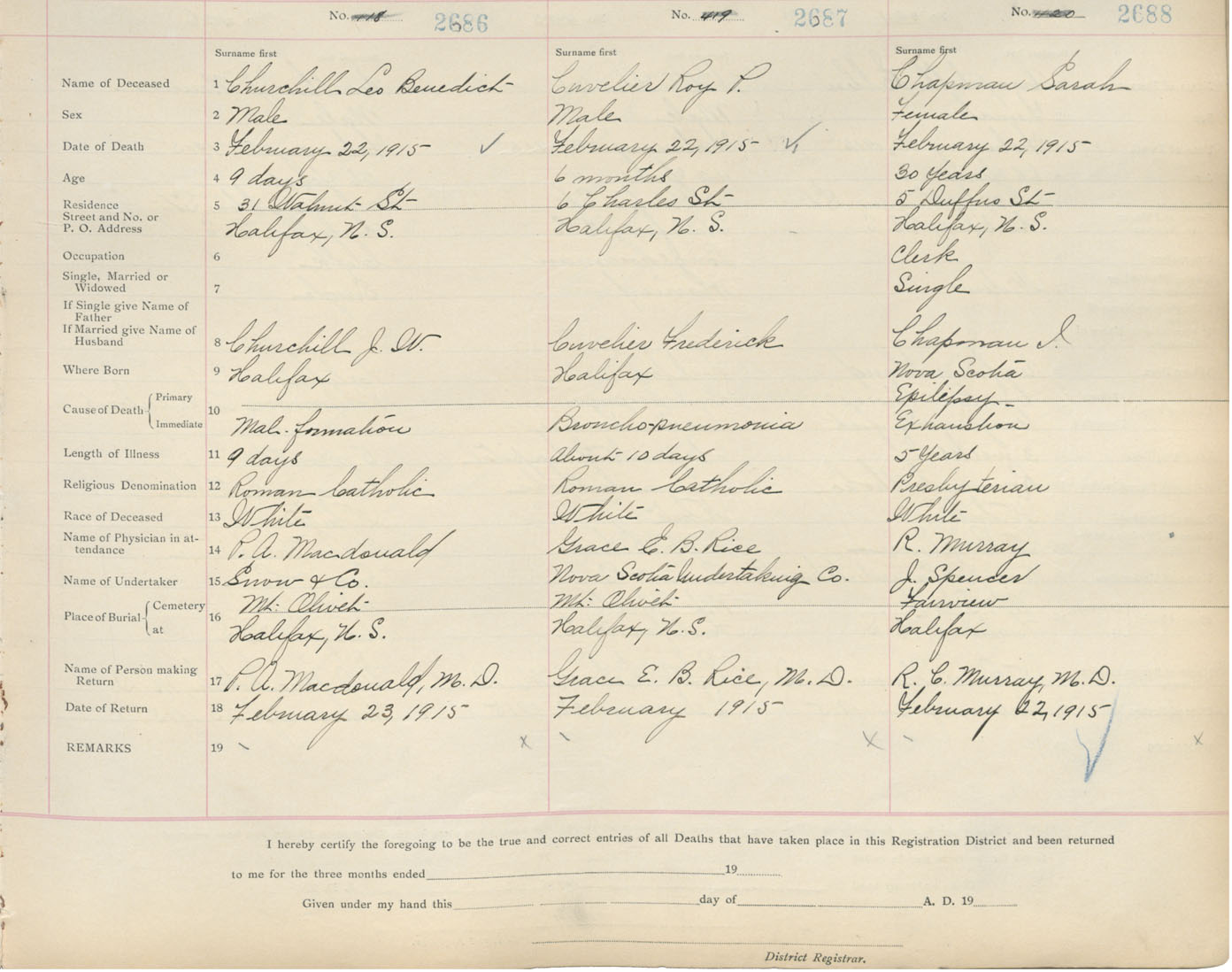 Death Registration: Year: 1915 book: 20 page: 448 number: 2688
