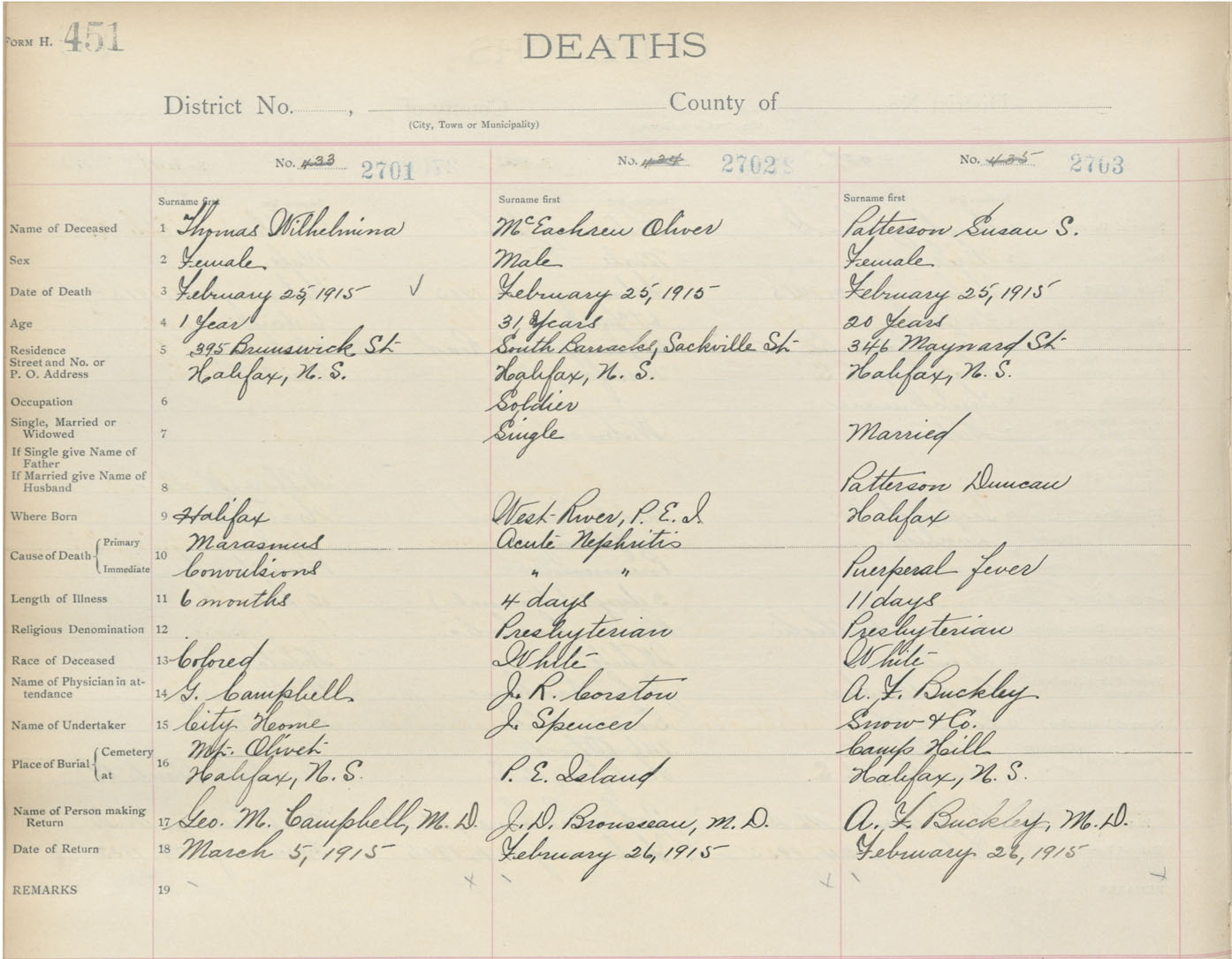Death Registration: Year: 1915 book: 20 page: 451 number: 2703