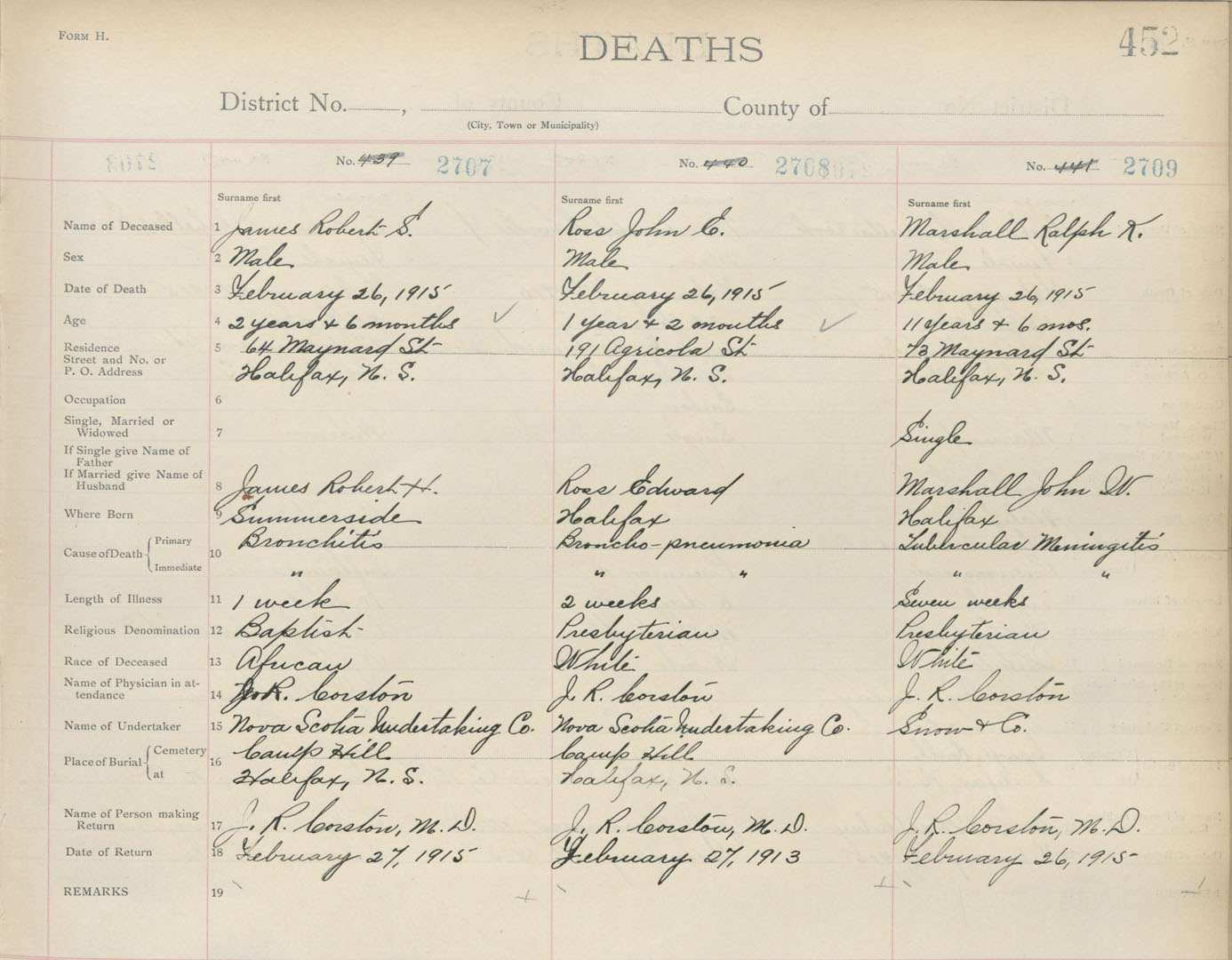 Death Registration: Year: 1915 book: 20 page: 452 number: 2709