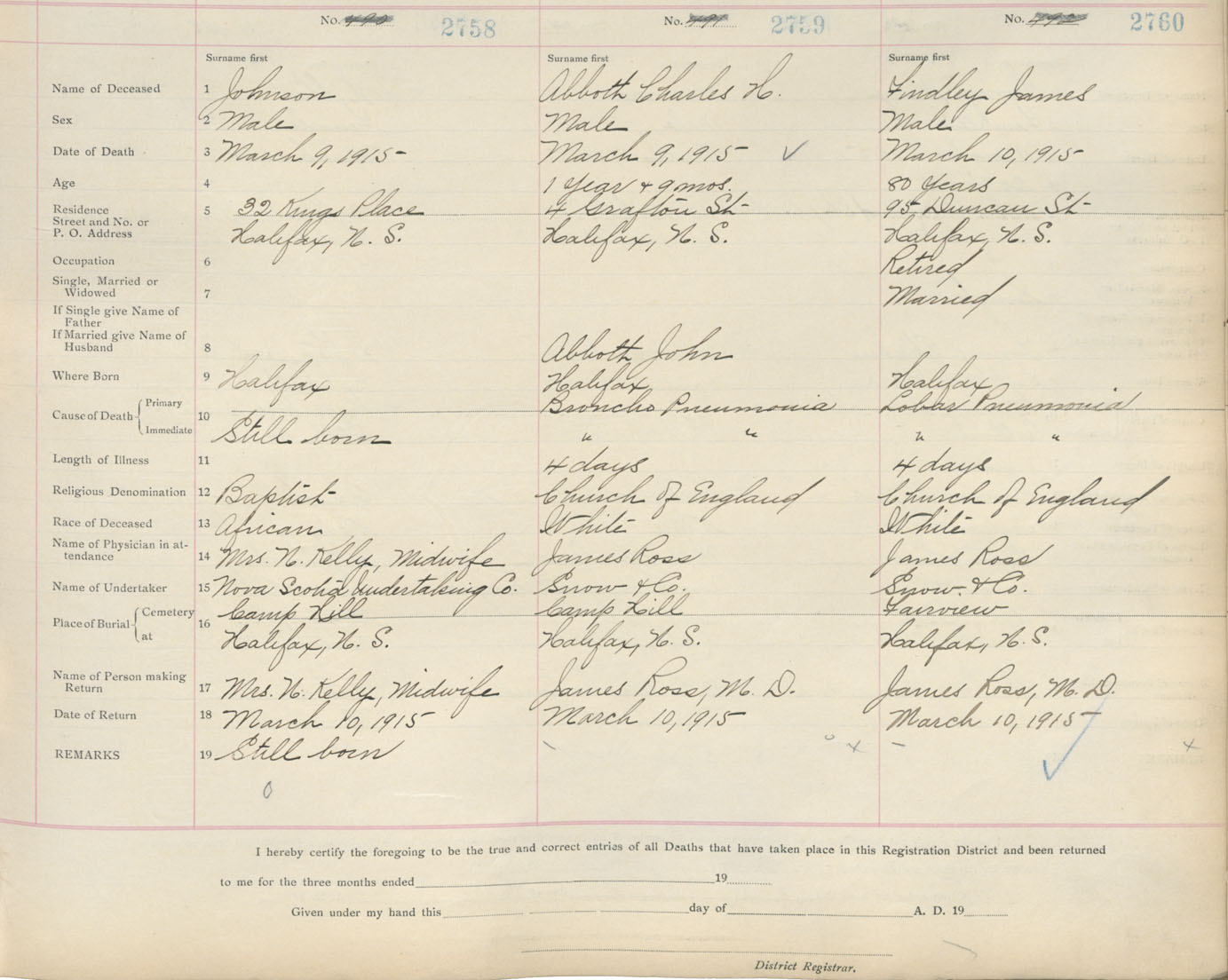 Death Registration: Year: 1915 book: 20 page: 460 number: 2758