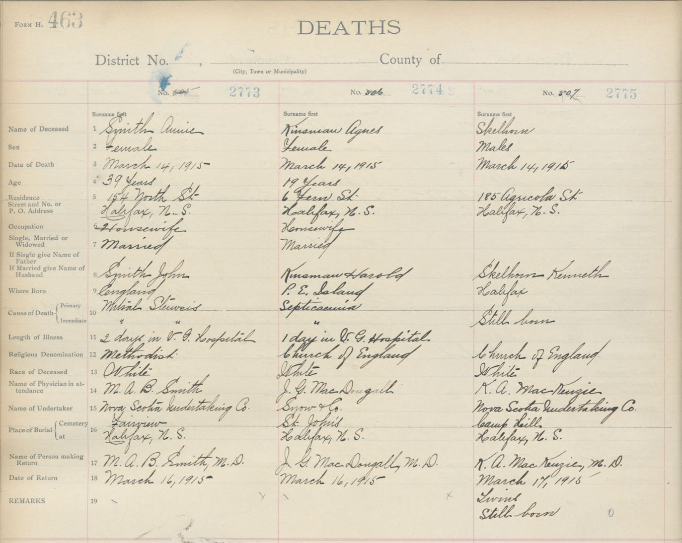 Death Registration: Year: 1915 book: 20 page: 463 number: 2773