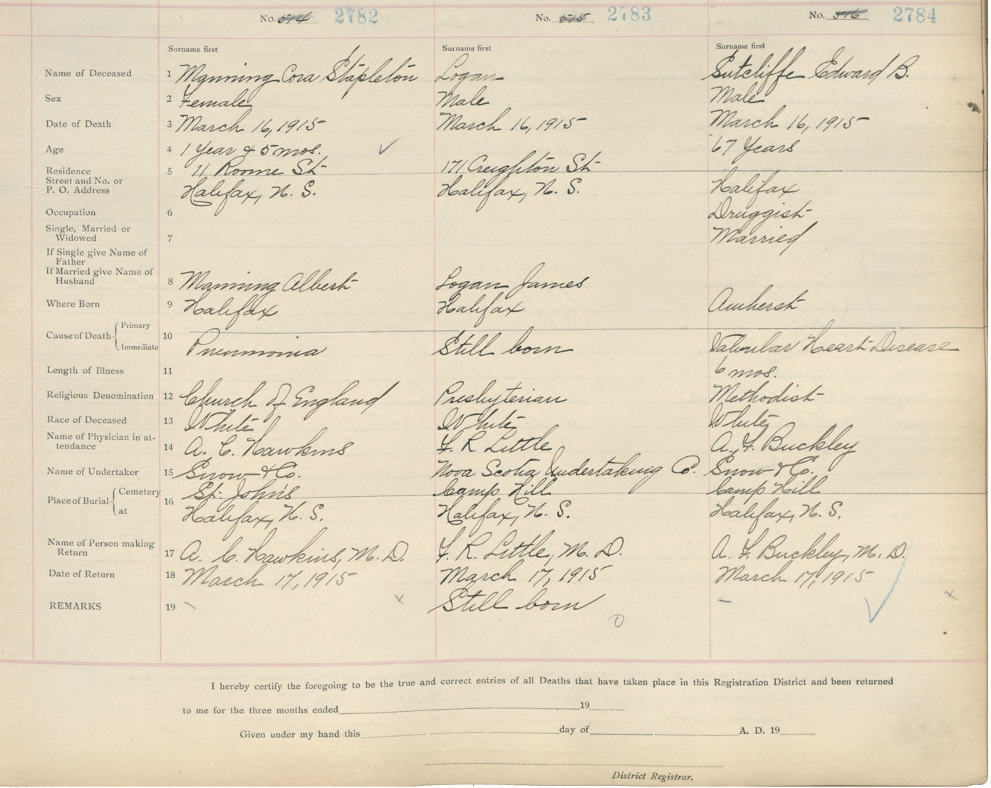 Death Registration: Year: 1915 book: 20 page: 464 number: 2782
