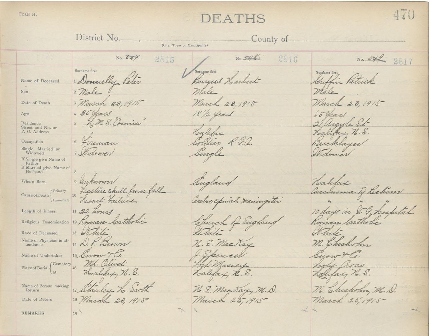 Death Registration: Year: 1915 book: 20 page: 470 number: 2815