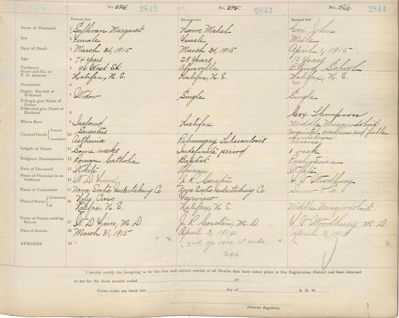 Death Registration: Year: 1915 book: 20 page: 474 number: 2842