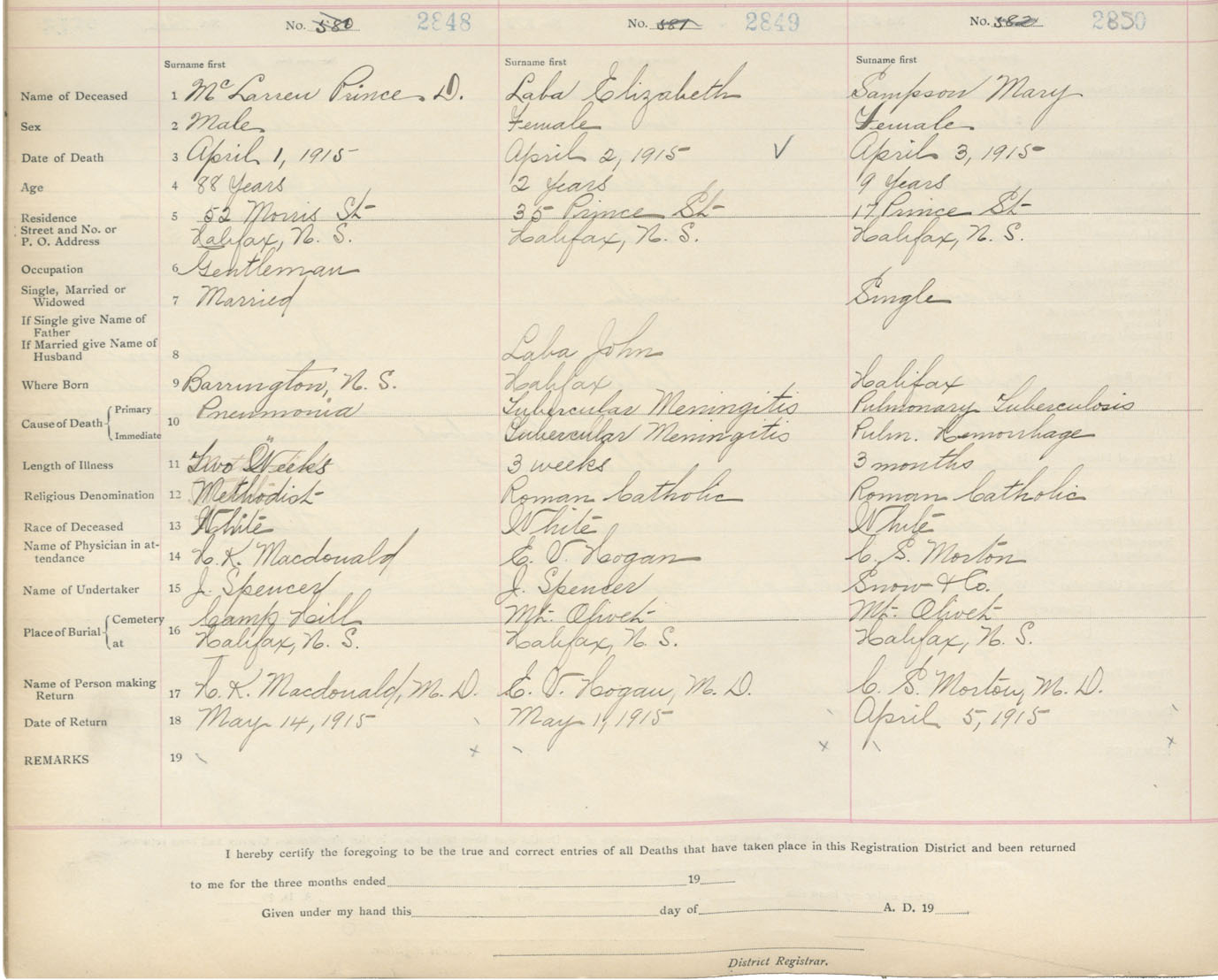 Death Registration: Year: 1915 book: 20 page: 475 number: 2848