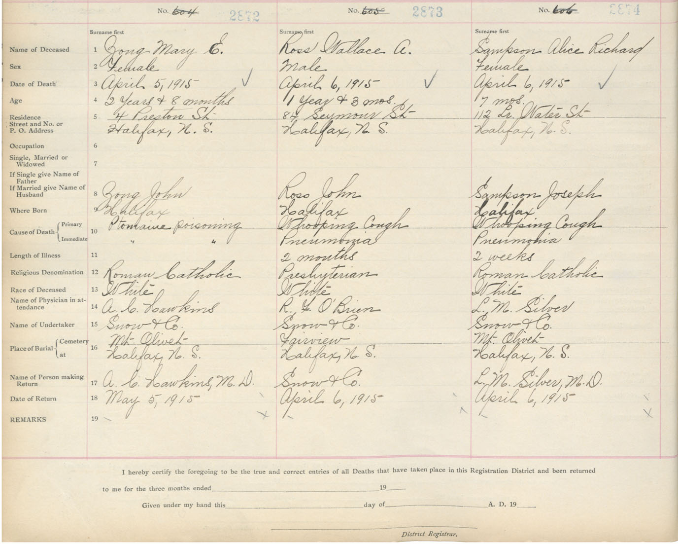 Death Registration: Year: 1915 book: 20 page: 479 number: 2872
