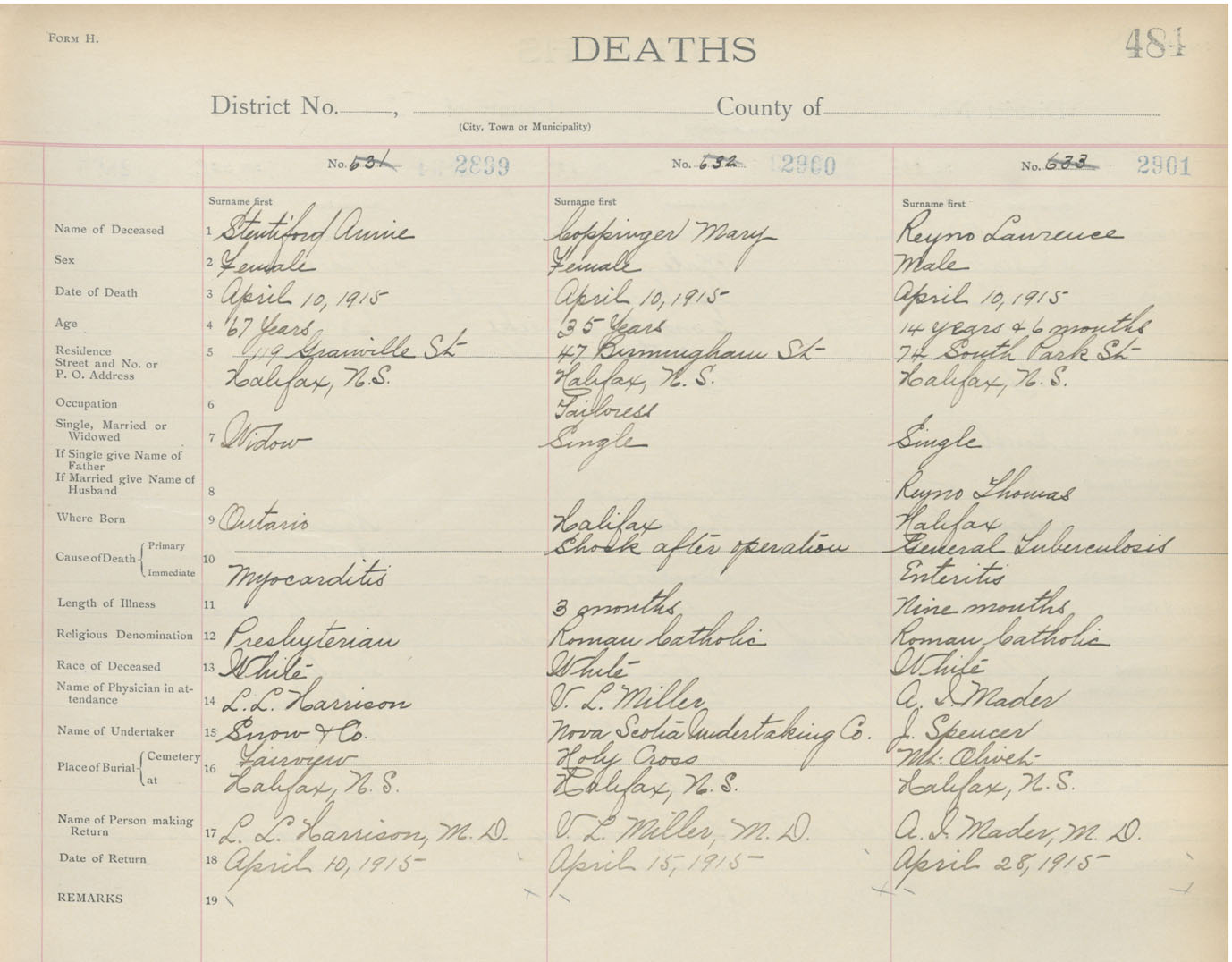 Death Registration: Year: 1915 book: 20 page: 484 number: 2899