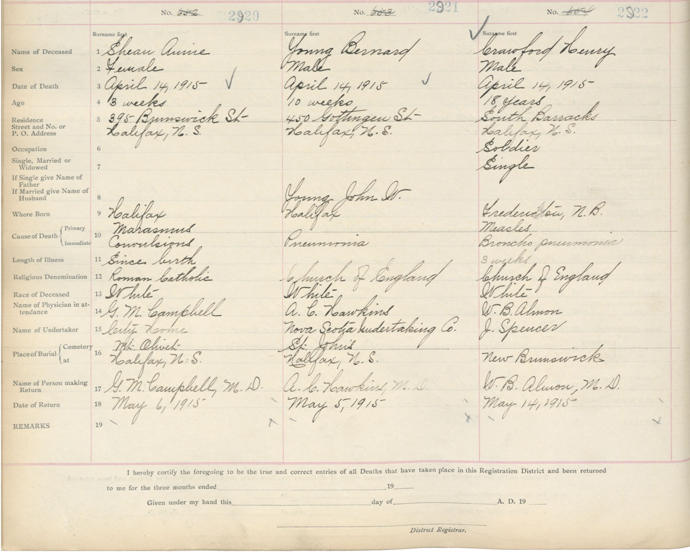 Death Registration: Year: 1915 book: 20 page: 487 number: 2920