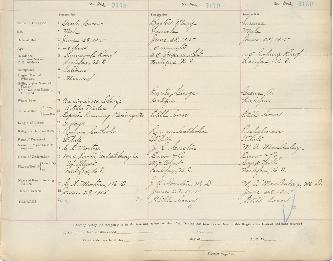 Male Death Registration: Year: 1915 book: 20 page: 530 number: 3180