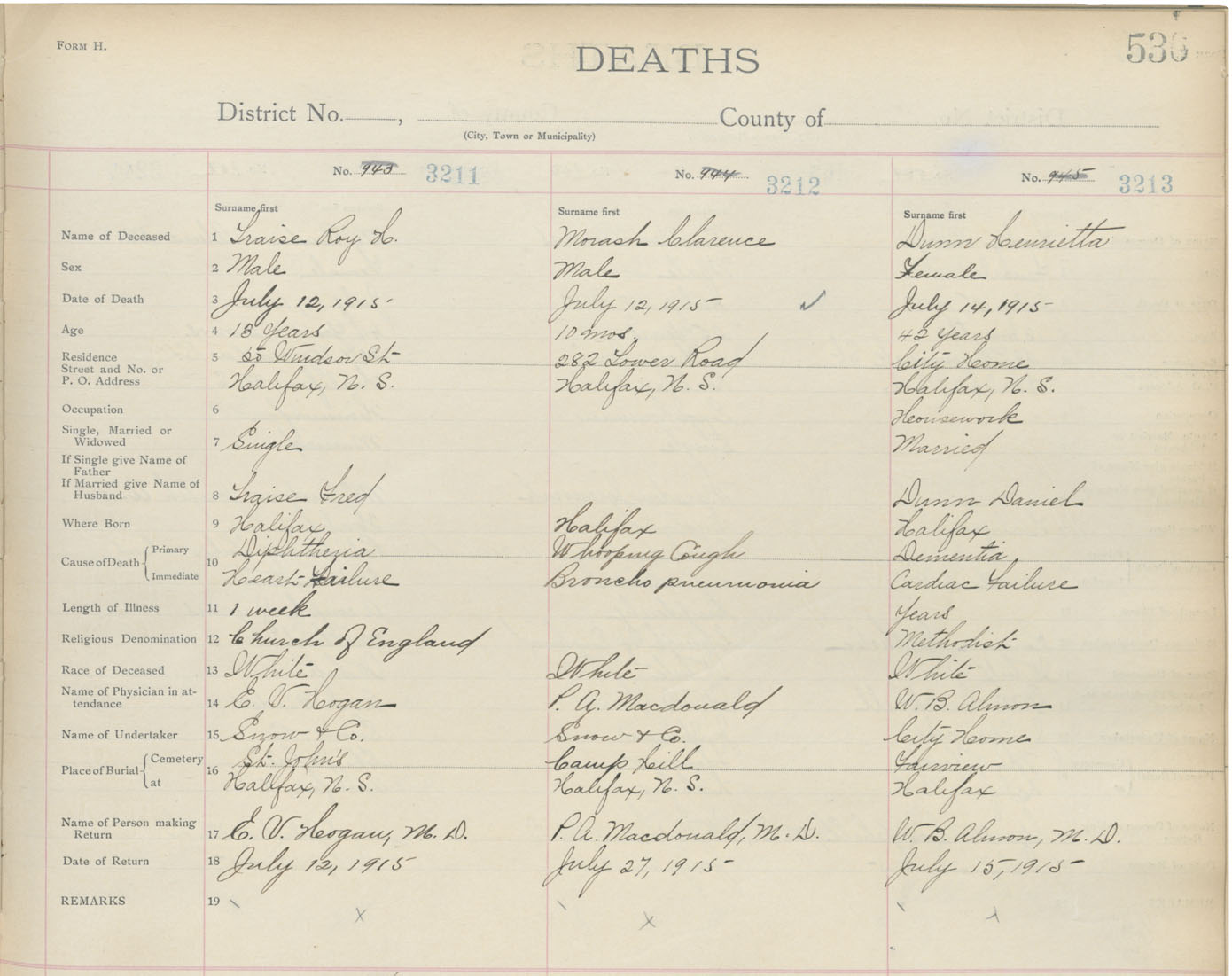 Death Registration: Year: 1915 book: 20 page: 536 number: 3213