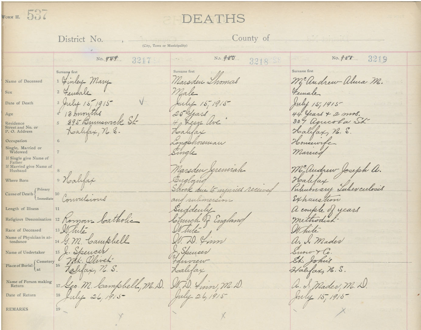 Death Registration: Year: 1915 book: 20 page: 537 number: 3219