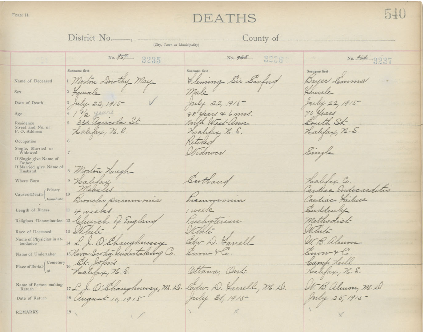 Death Registration: Year: 1915 book: 20 page: 540 number: 3237