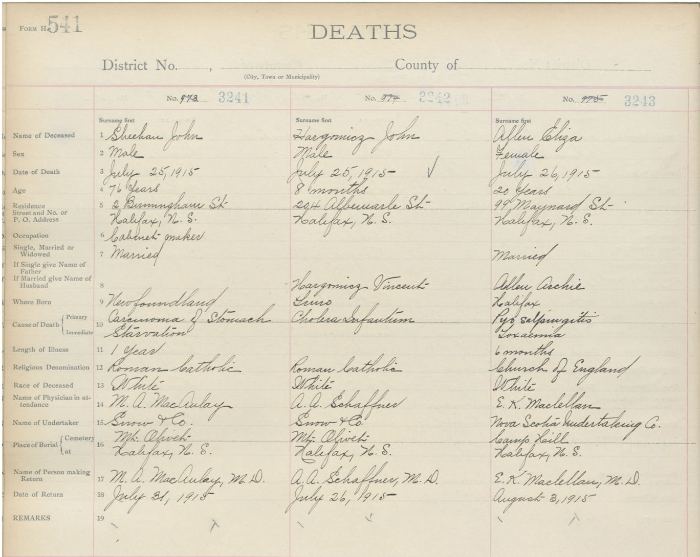 Death Registration: Year: 1915 book: 20 page: 541 number: 3243