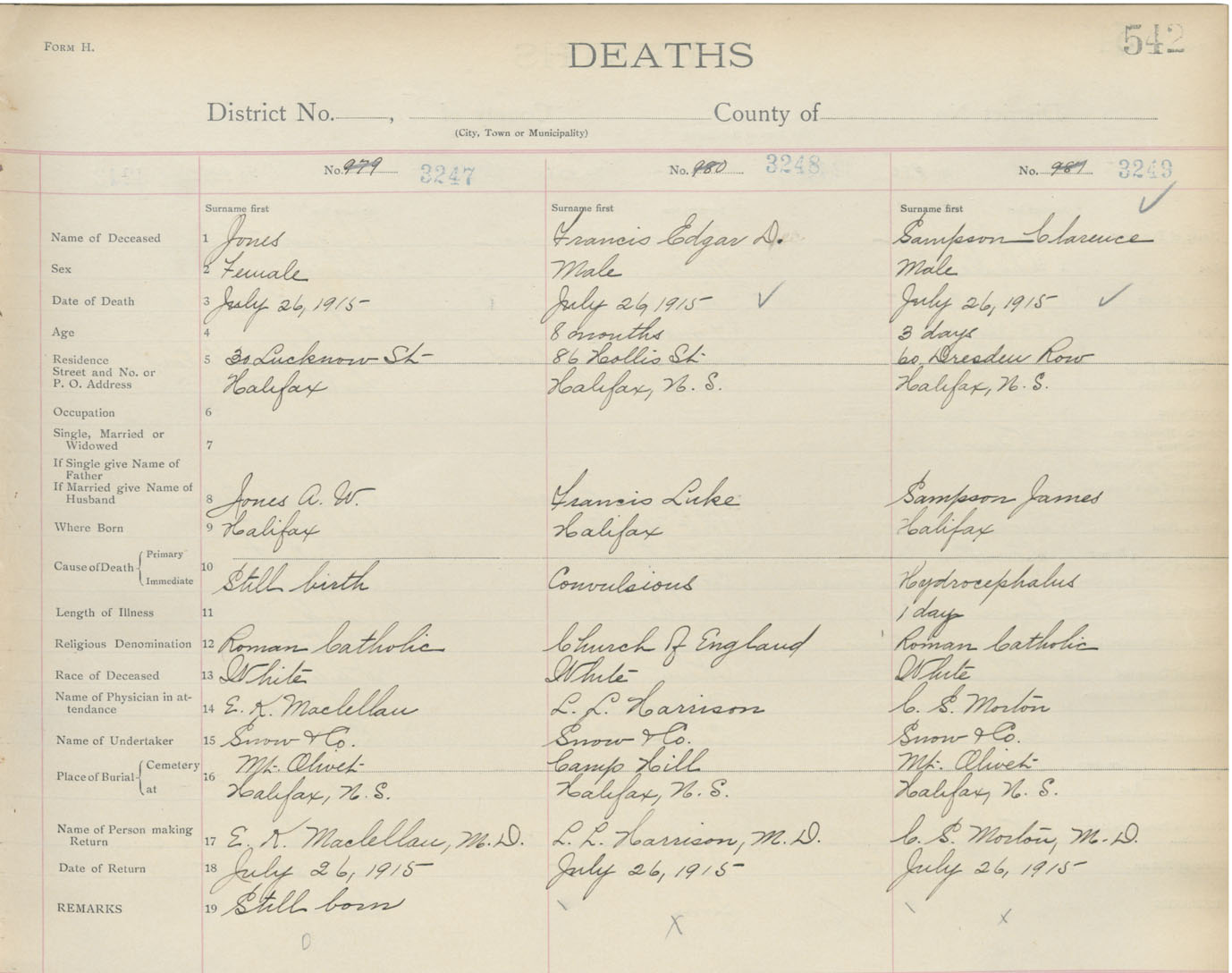 Death Registration: Year: 1915 book: 20 page: 542 number: 3249