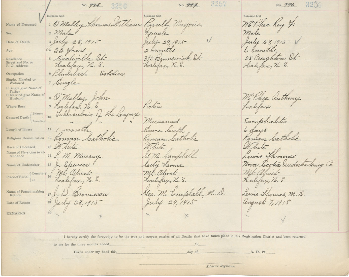 Death Registration: Year: 1915 book: 20 page: 543 number: 3258