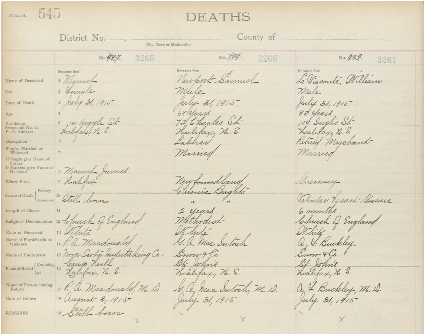 Death Registration: Year: 1915 book: 20 page: 545 number: 3267