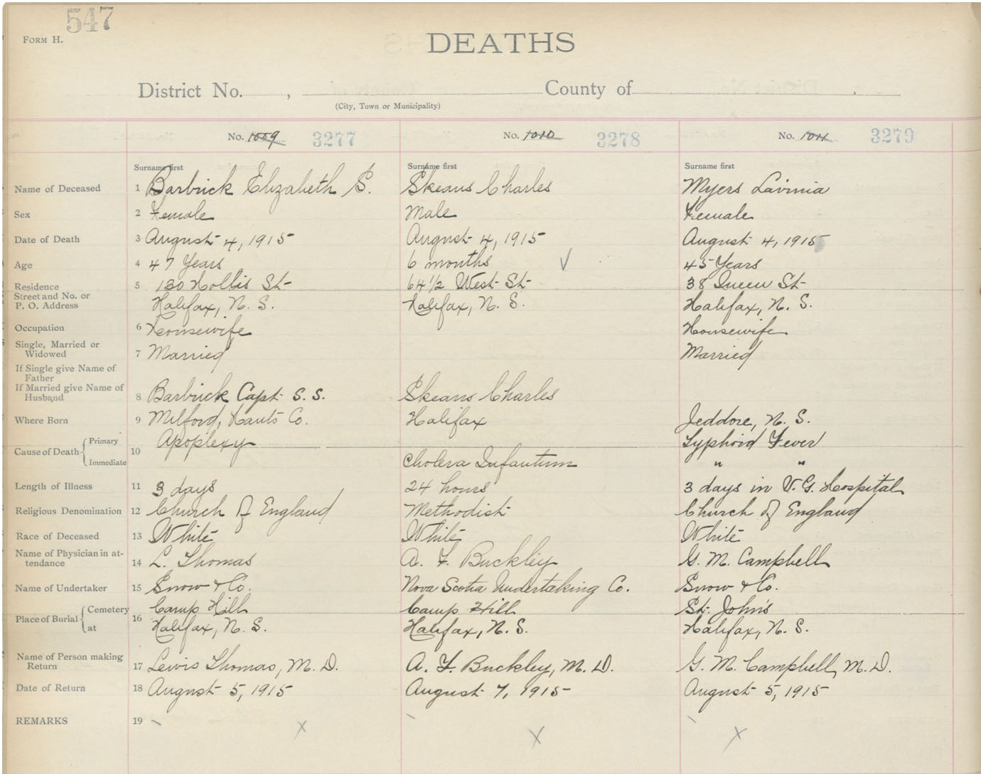 Death Registration: Year: 1915 book: 20 page: 547 number: 3279