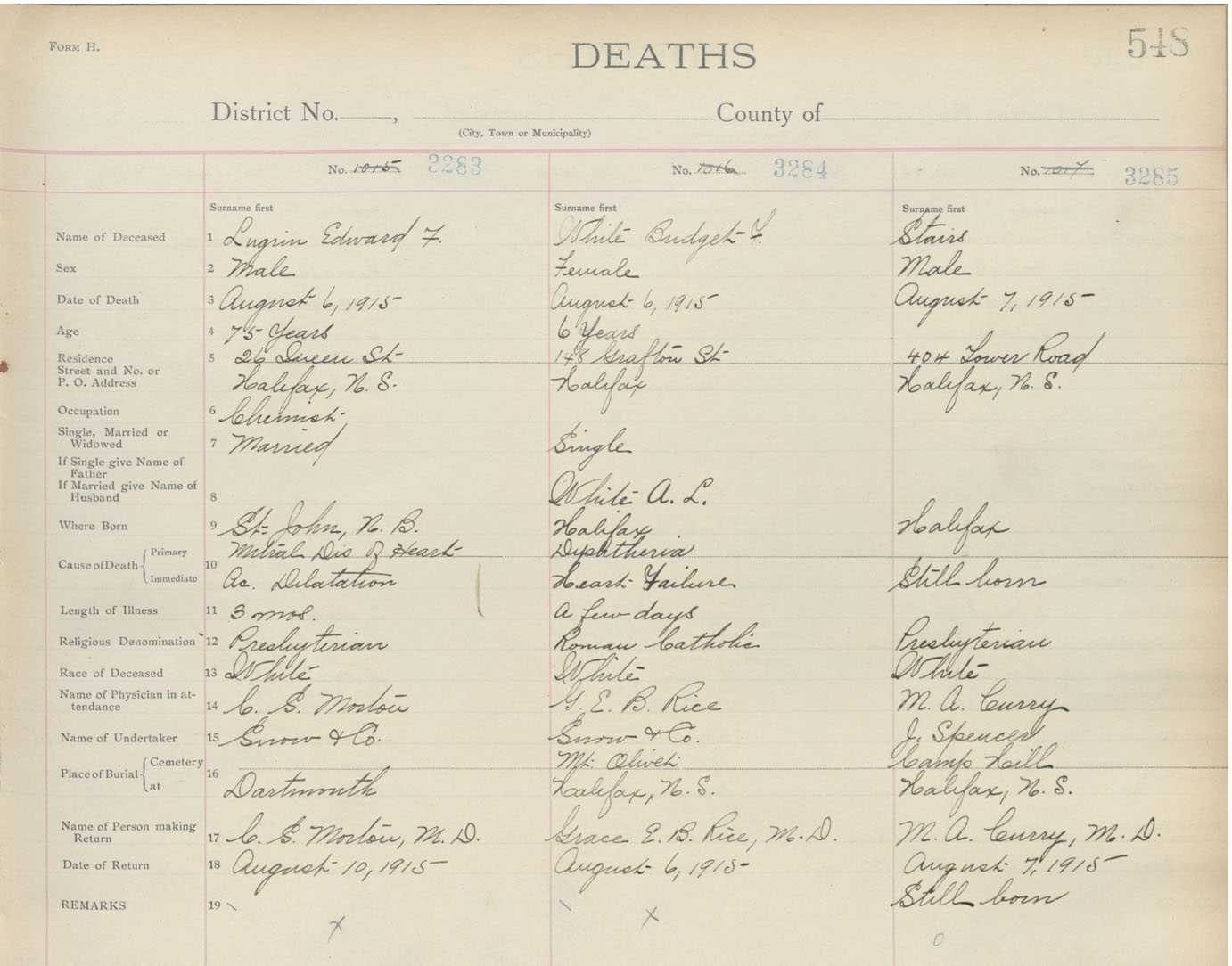 Death Registration: Year: 1915 book: 20 page: 548 number: 3285