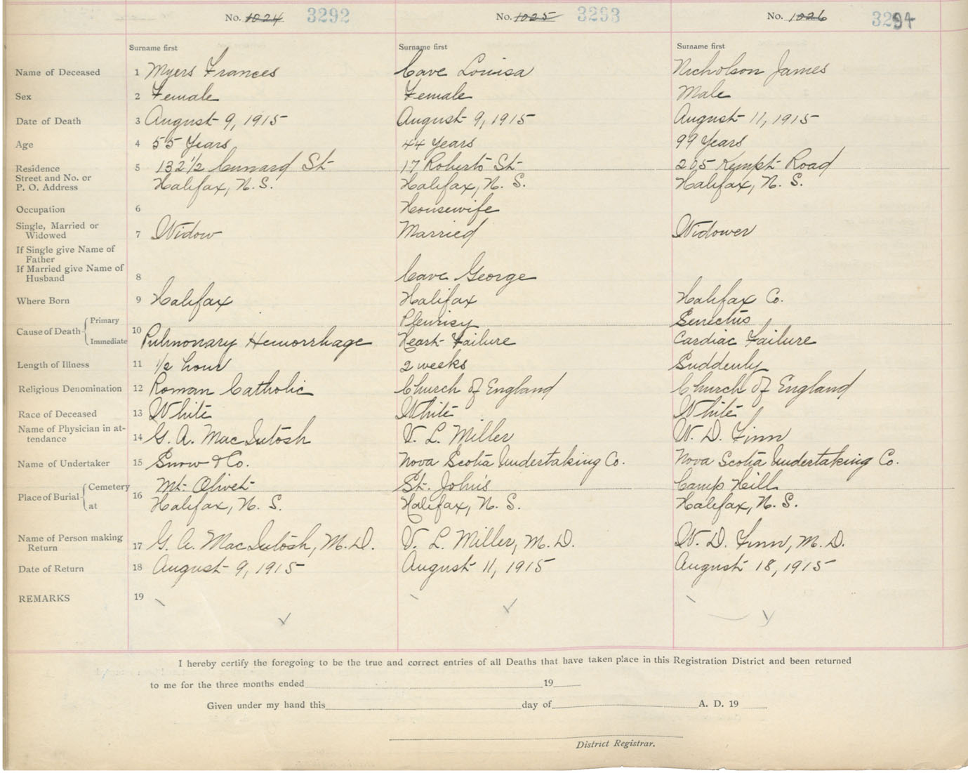 Death Registration: Year: 1915 book: 20 page: 549 number: 3294