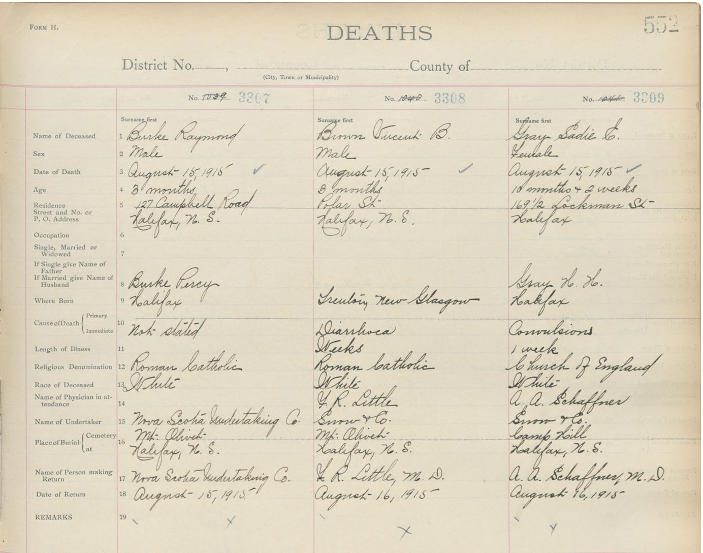Death Registration: Year: 1915 book: 20 page: 552 number: 3309