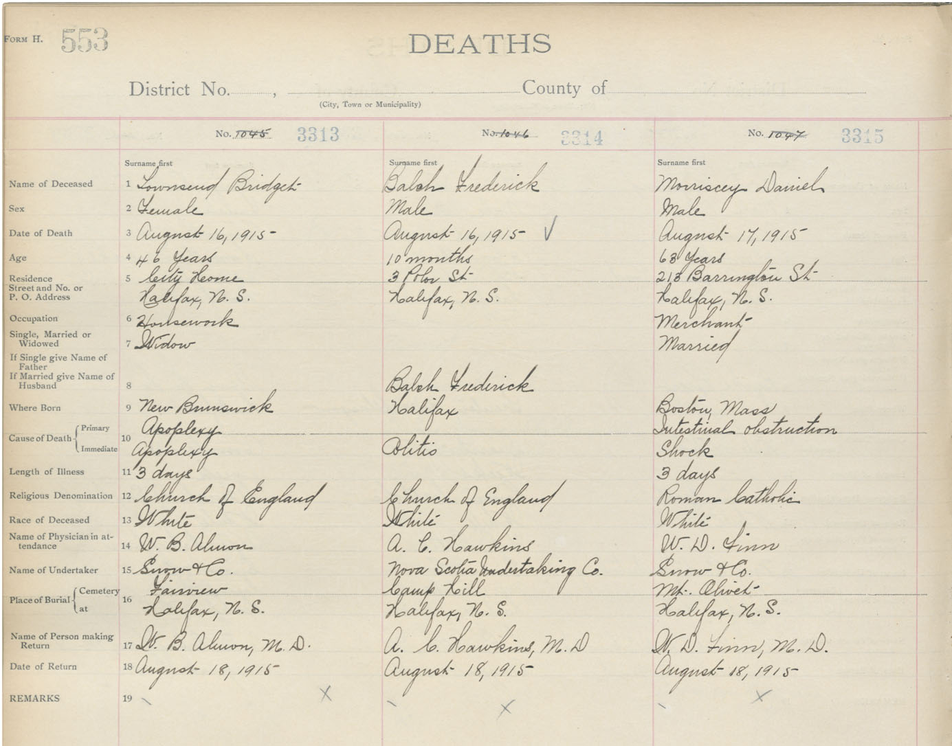 Death Registration: Year: 1915 book: 20 page: 553 number: 3315