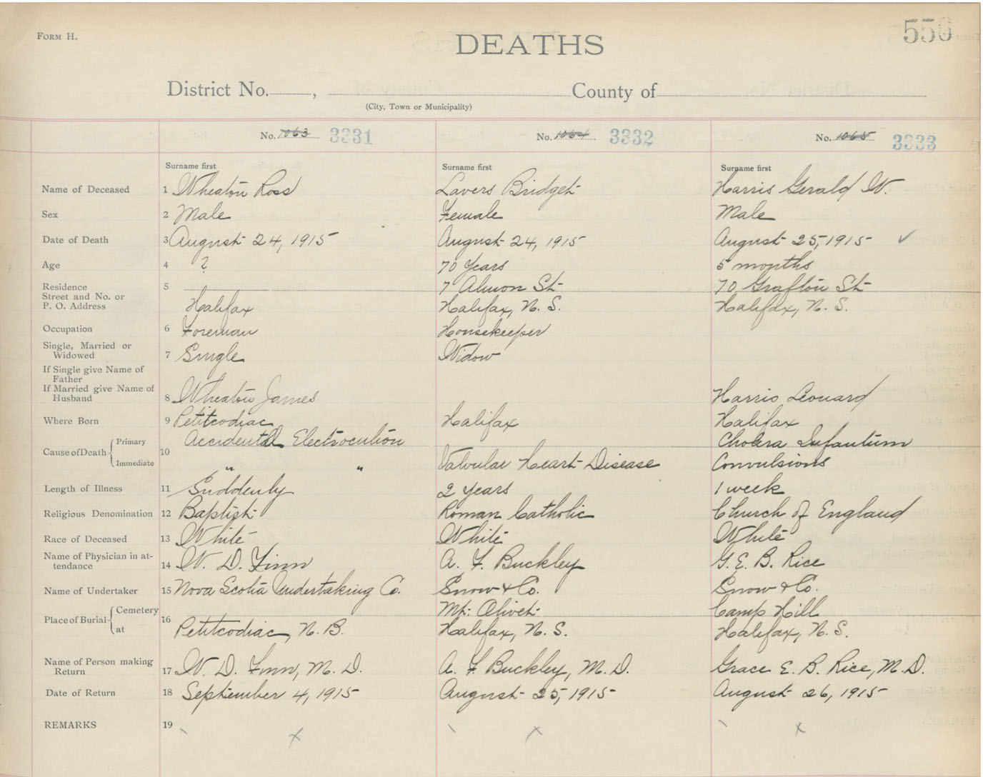 Death Registration: Year: 1915 book: 20 page: 556 number: 3333
