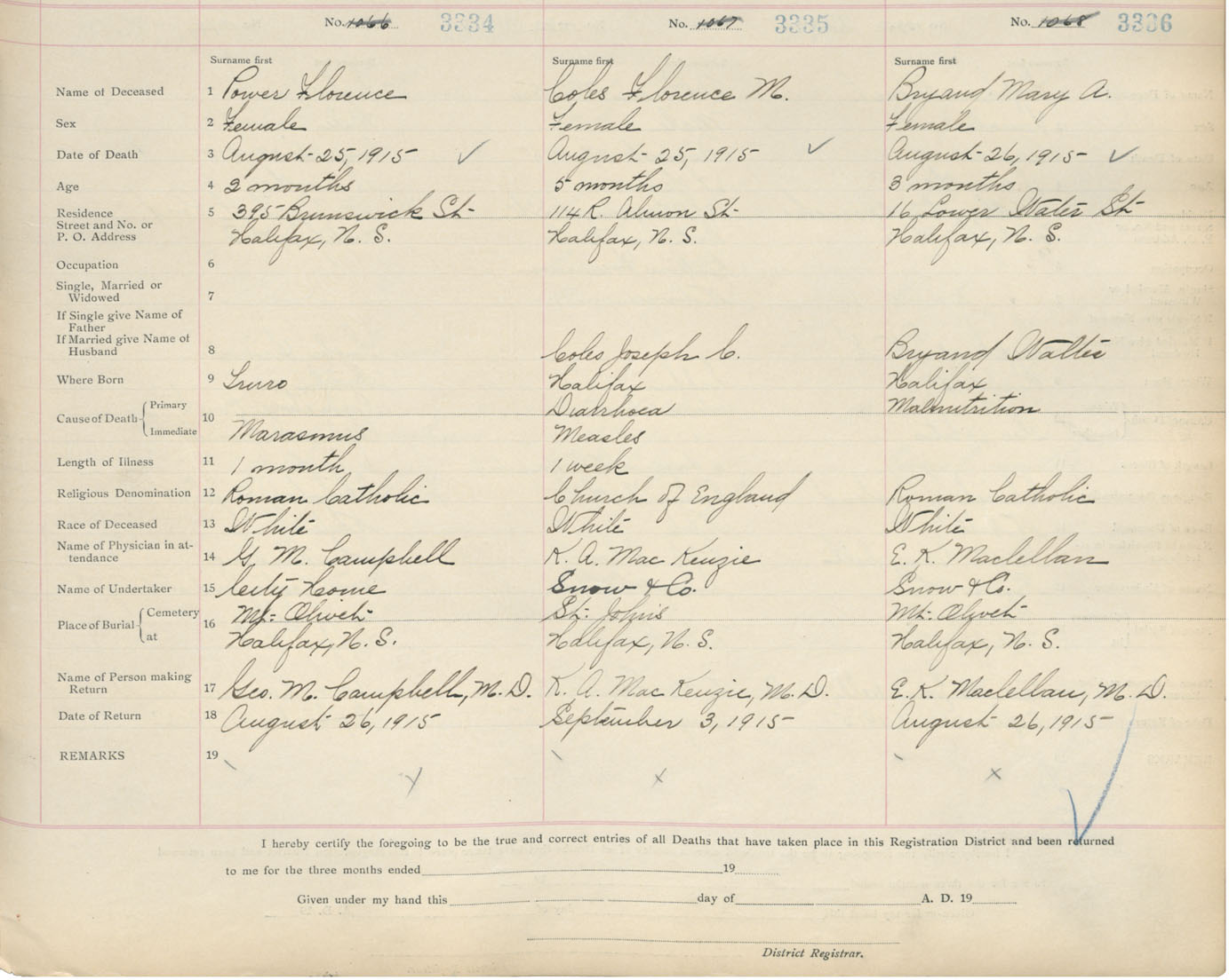 Death Registration: Year: 1915 book: 20 page: 556 number: 3336