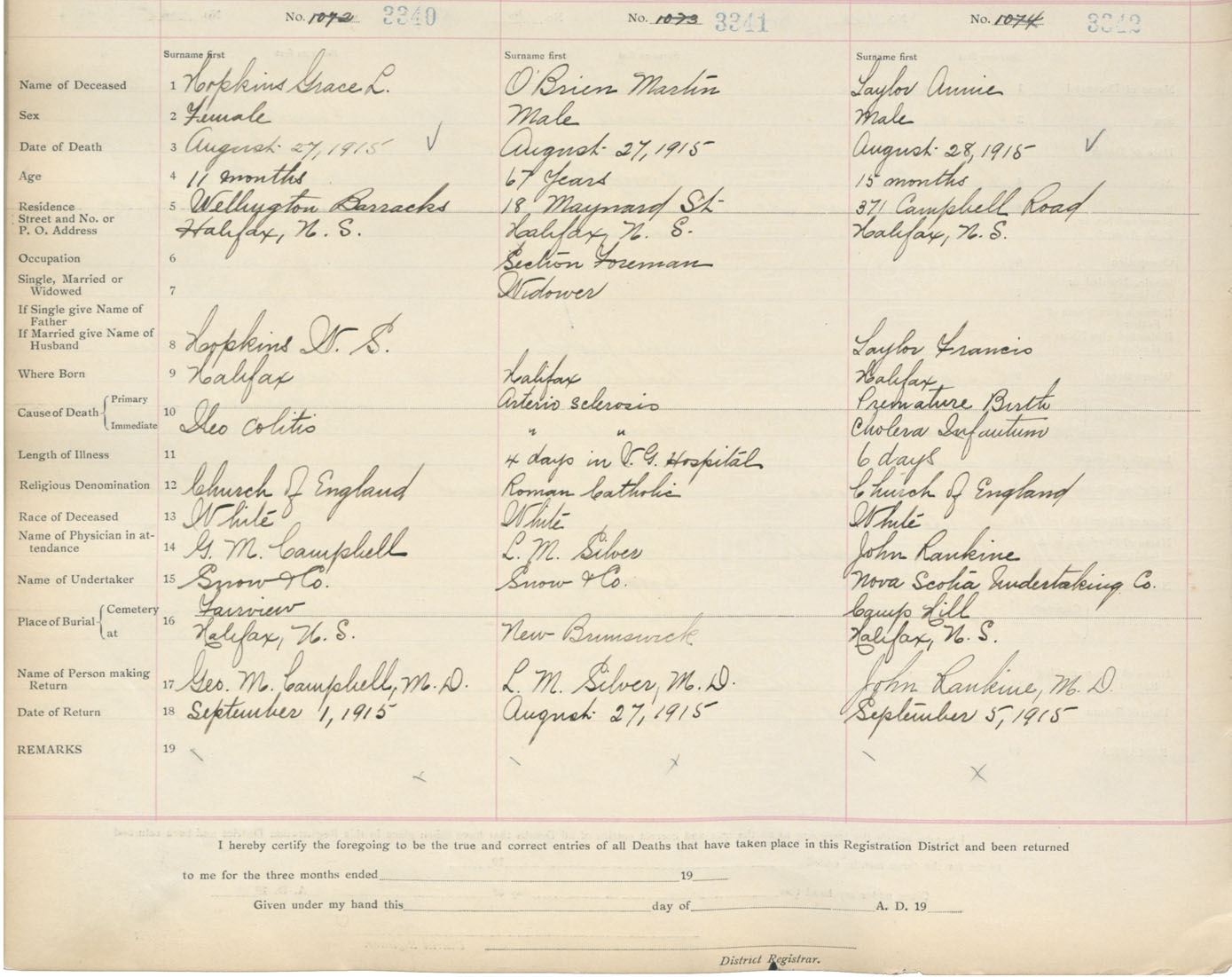 Death Registration: Year: 1915 book: 20 page: 557 number: 3342