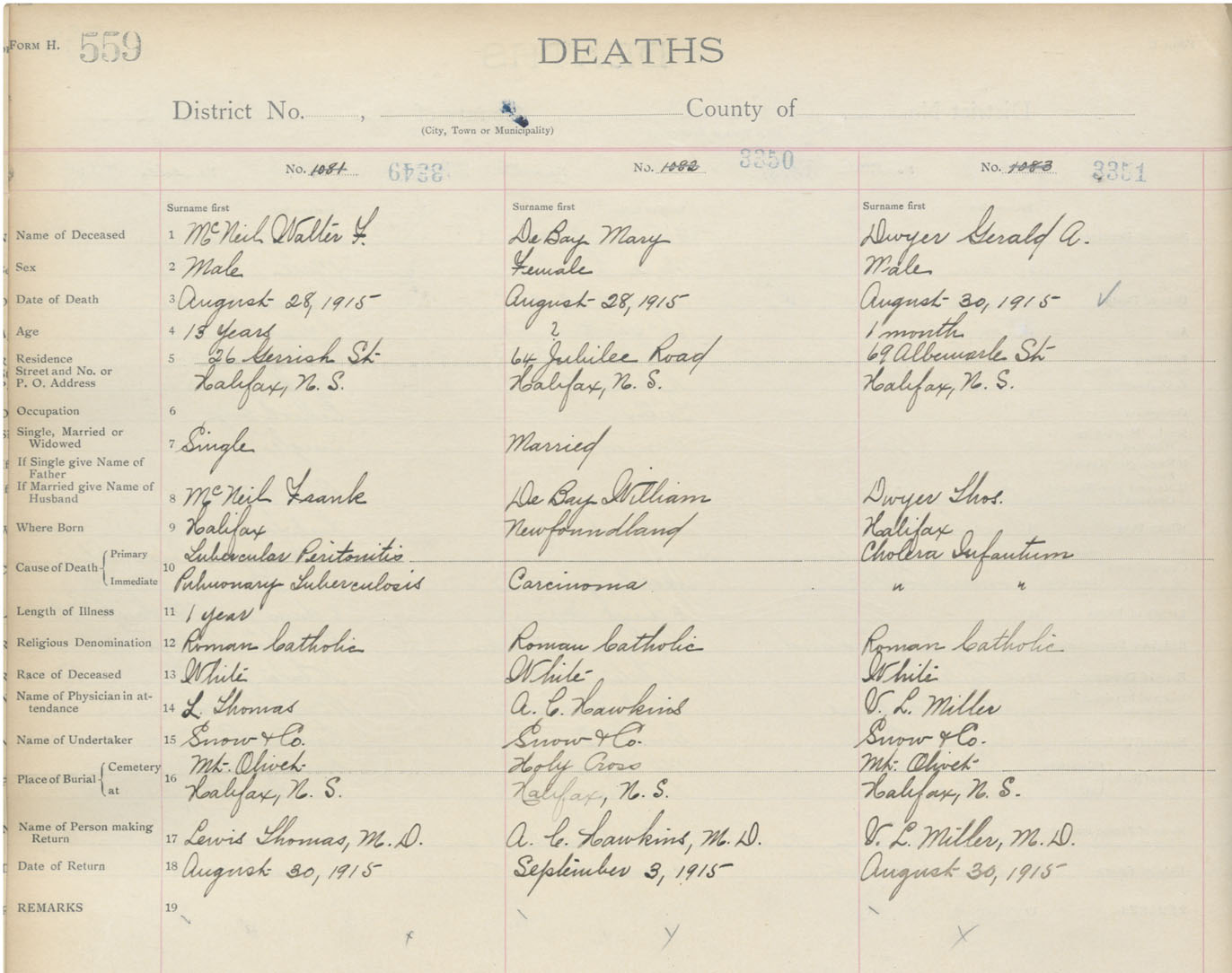 Death Registration: Year: 1915 book: 20 page: 559 number: 3351