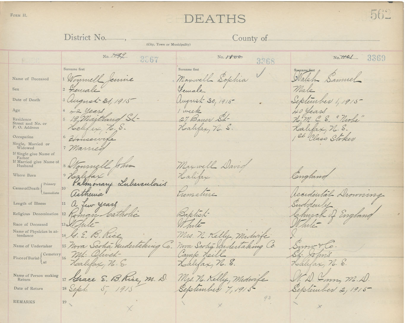 Death Registration: Year: 1915 book: 20 page: 562 number: 3369