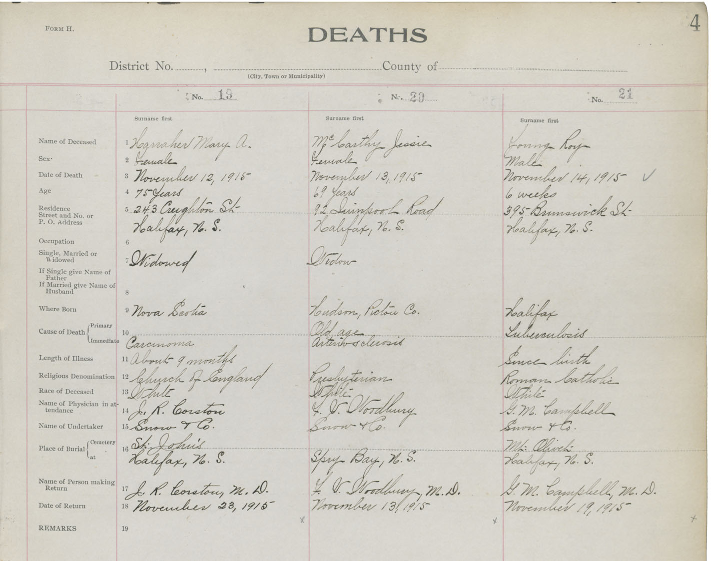 Death Registration: Year: 1915 book: 21 page: 4 number: 19