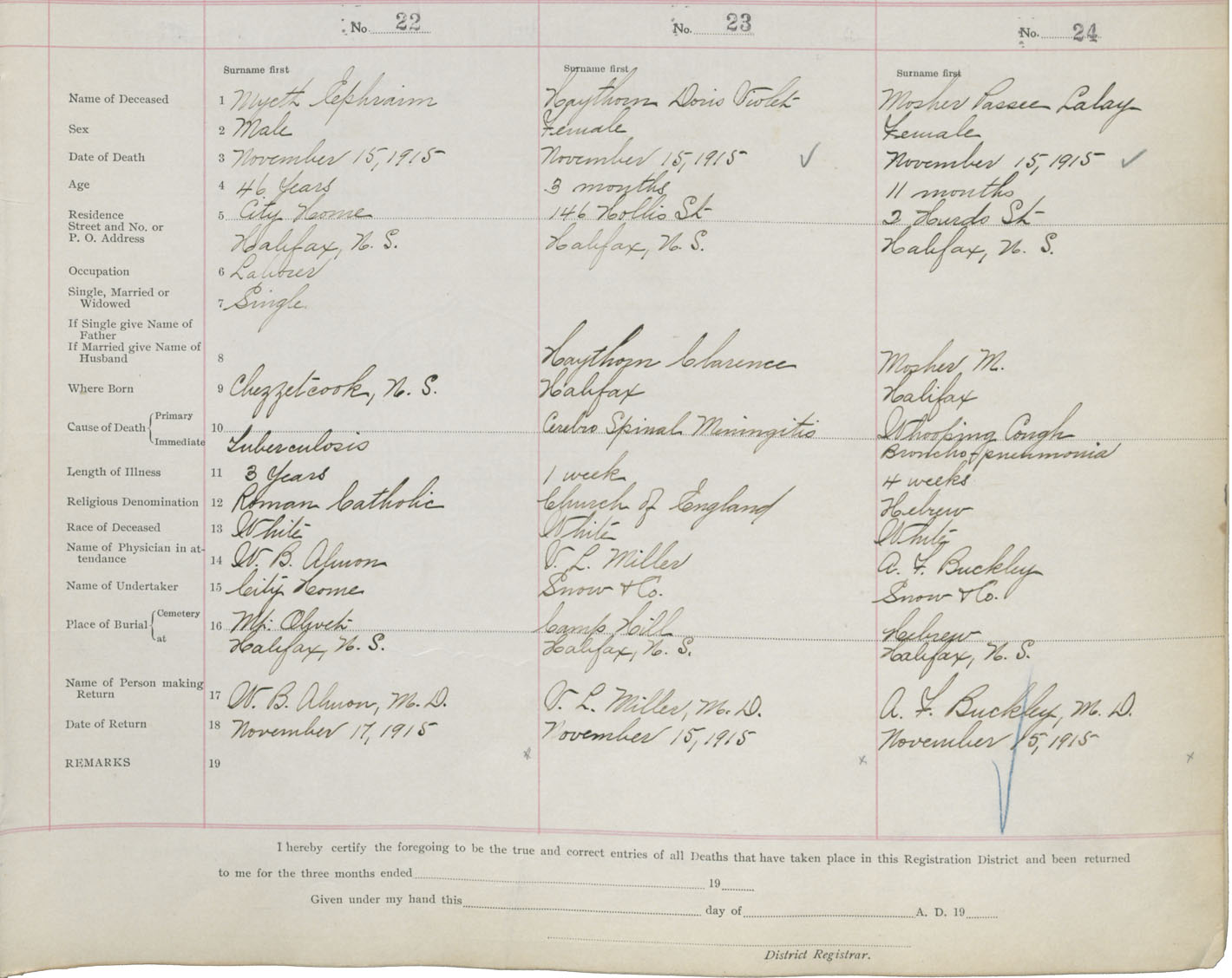 Death Registration: Year: 1915 book: 21 page: 4 number: 22