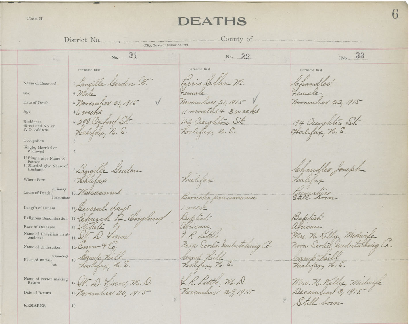 Death Registration: Year: 1915 book: 21 page: 6 number: 31