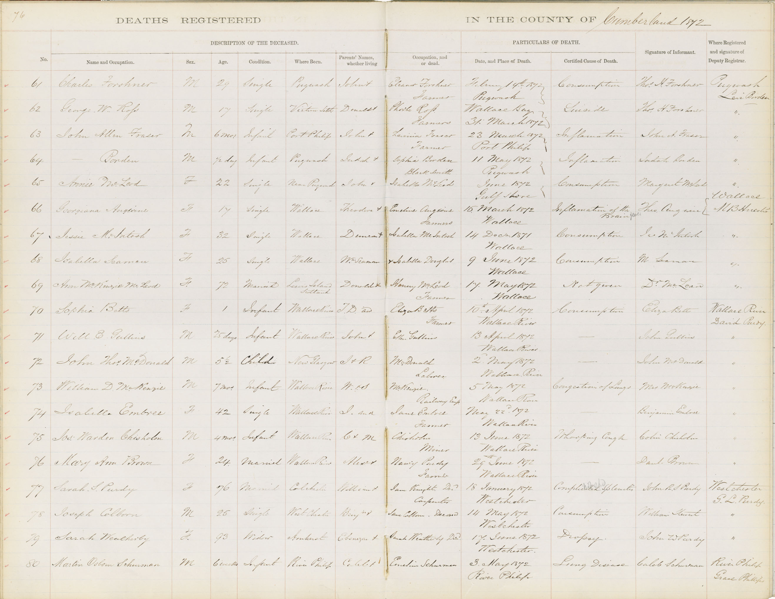 Death Registration: Year: 1872 book: 1805 page: 76 number: 80