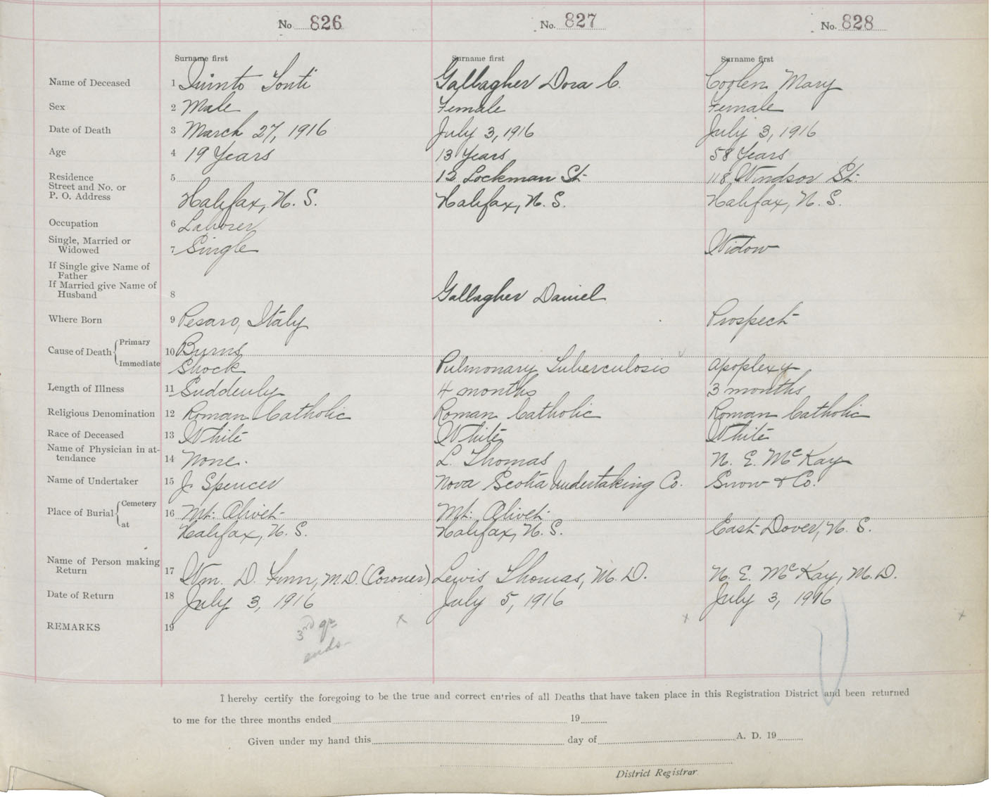 Death Registration: Year: 1916 book: 21 page: 138 number: 828